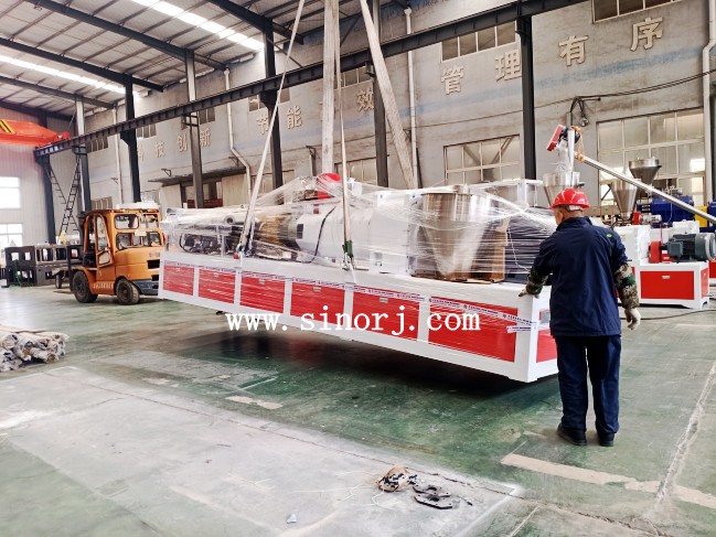 大理石板設(shè)備墻板設(shè)備裝柜進(jìn)行中,扣板生產(chǎn)線試機(jī)進(jìn)行時