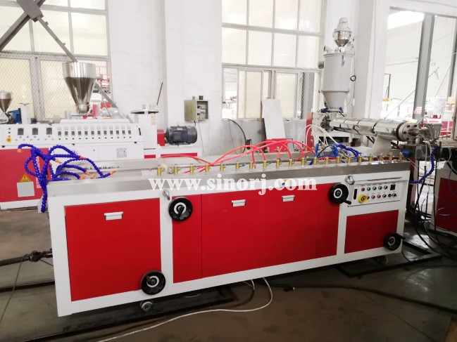 PC共擠型材生產(chǎn)線工廠內(nèi)試機進行中